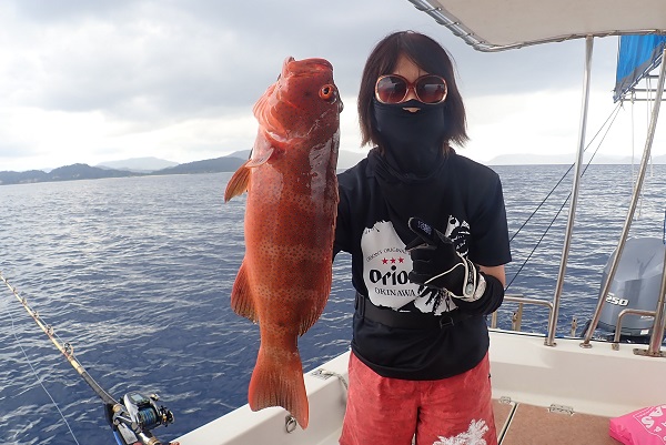 | 今日もベタ凪、海日和です!今日は島周りで美味しいサイズのアカジン狙いの泳がせ釣りです。 久し振りに入ったグルクン釣りポイント。無難に釣れ、そのまま泳がせ釣り開始。開始1投目にして1.5kgのアカジン釣れました〜。 その後は沖のポイントを転々として、2.5kg、3kgオーバーの良型と計3匹の美味しそうなアカジンを見事釣り上げていただきました。 |