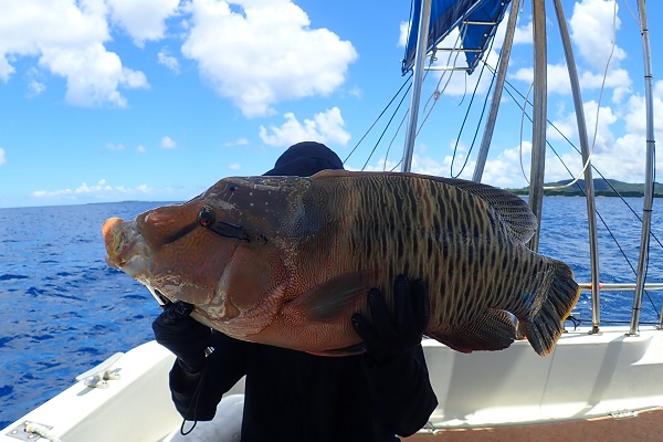 | 今日は朝から雷でしたが、海に出てみれば快晴の西表島です。 本日はグルクン泳がせ釣りでアカジン狙いで出船です。 満ち潮〜潮止まりまでグルクン釣りでしたが活性良く2時間で50匹は確保。その後沖へ出て釣りするも潮が全く流れてなく大きくポイント移動。 今月頭に10kgのアカジンを釣り上げた大物ポイント。見事1流し目で強烈なバイトから上がってきたのは7kgのナポレオンでした。 その後もアタリは出続けてましたがサメ以外魚の顔は拝めず・・。 またの機会にリベンジお待ちしております。 |