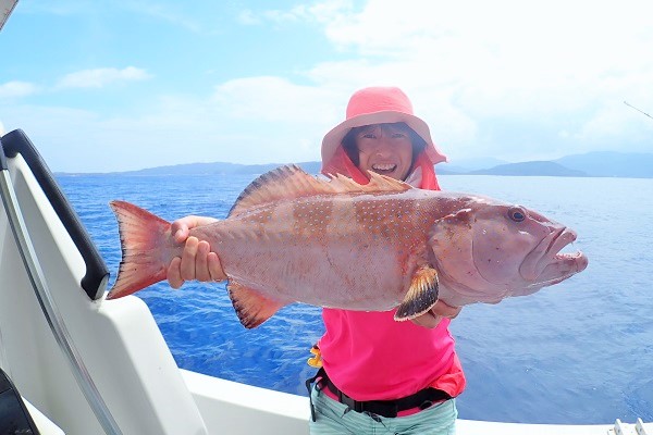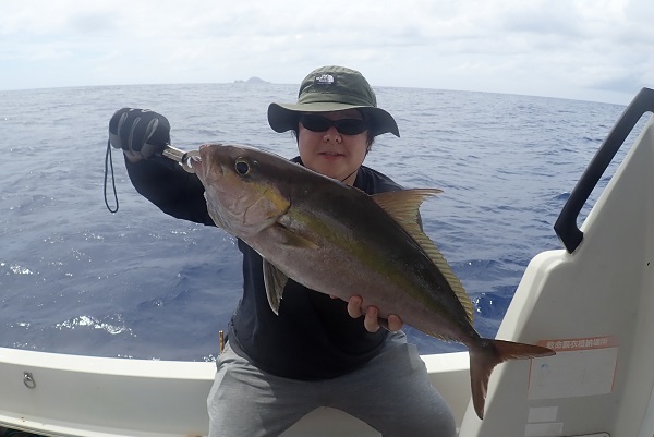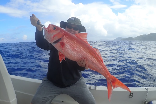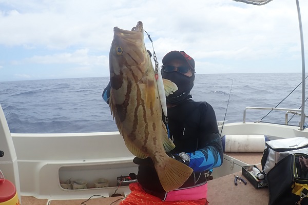 | 連休最終日にようやく波が穏やかになってきました。今日はリピーター様と深海ジギングへ行って来ました。 ポイント到着後の1流し目で立派なオオクチハマダイ。相変わらずこのポイントは活性が高いです。その後も流し続けましたが、潮の流れが変わり無反応に・・・。 流れもなく、大きなうねりのみの波だったため、仲の神島付近の瀬でカンパチ狙いへ路線変更。水深160〜180mでイソマグロ・カンパチ・ホウキハタとキャッチ! 明日はもっと波が落ち着く予報です。深海ジギング頑張りましょう。 |