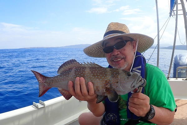 | 台風直前ラストツアー。今日の夕方の満ち潮でマングローブ内へ船を避難させます。今日もまだ生簀で生きているグルクンを使い、水深30〜40mのライト泳がせ釣りです。 結果はアザハタが2匹でした!途中、カマス?みたいなアタリが連発していましたが合わせるタイミングが分からず今回はお預けとなりました。明日から数日間はお休みとさせていただきます。ツアーは16日から再開を予定しています。 |