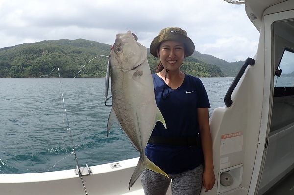 | 時化続きだった西表島。ようやく波2.5→2mに落ち着いてくる予報なので、湾内限定で出船してきました。午前中はかけ上がりや避難ブイ周りを徹底的に投げ倒してGT探し。魚探では底べったりに反応が出ているのでTGベイトを落としてみれば、 オニヒラアジが食い付いてきました。その後もひたすら投げ倒して今日は残念ながらノーバイト。またリベンジお待ちしております。 |