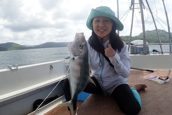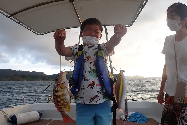 | 今日は台風前ラストのサンセットツアーです。波がある為、風裏ポイントまで船を走らせて釣りをしてきました。 約2年ぶり!?に遊びに来てくれた親子。前回同様スタート時はお昼寝、徐々にエンジンがかかってきて、帰る直前に本気モードになり美味しい夕食をキャッチでした。美味しく食べて下さいね〜 |