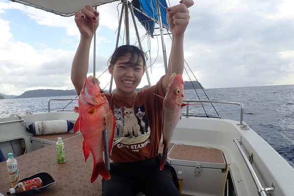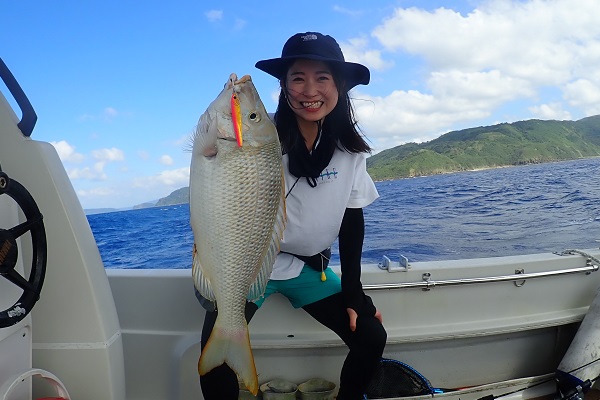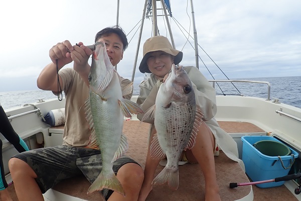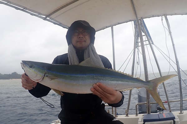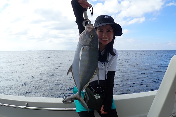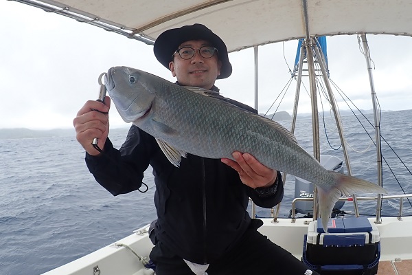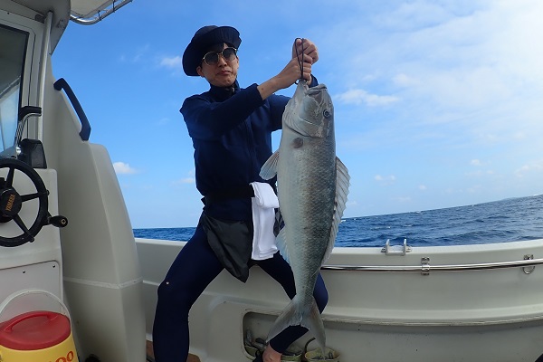 | 今日は北風が強く島の南側まで遠征してジギング&タイラバです。 潮の流れが速く釣りにくい状況でしたが、そんな時はスマが良く釣れます。関東ではなかなか釣れないサイズを釣り上げてすでに大満足。 彼女にはジグの動かし方をレクチャーして、狙い通りにTGベイトでナンヨウカイワリ!!その後は食いっ気がなくなったので少し深場へ移動。 タマンにキツネフエフキと引きの強い魚がなんとか釣れました。 しかし逃がした魚はデカかった!?是非また遊びに来てください。 |