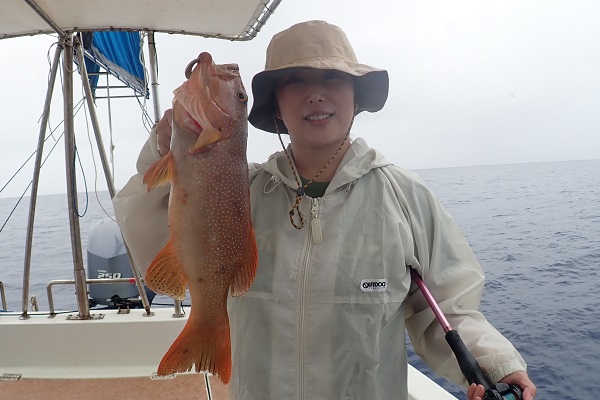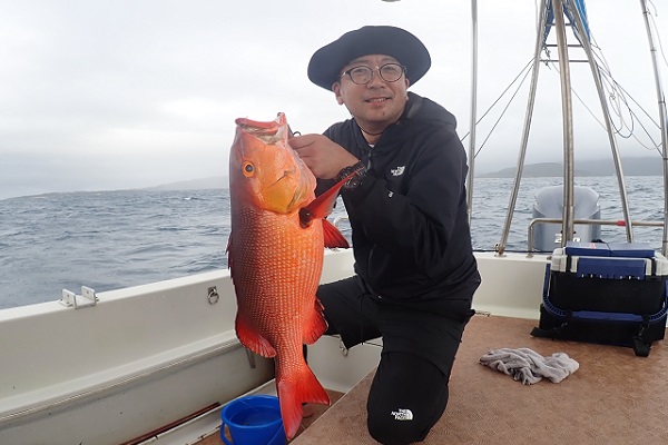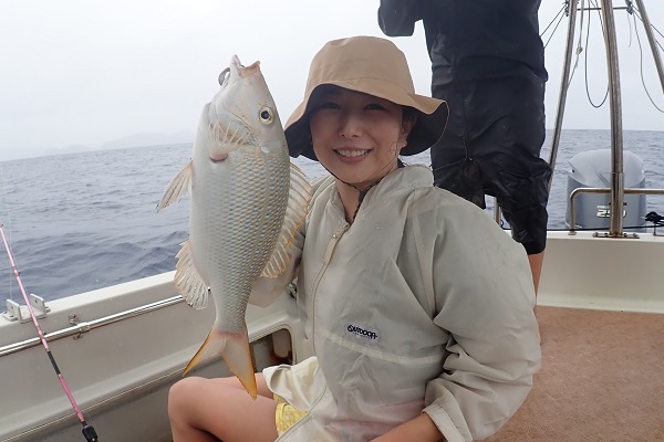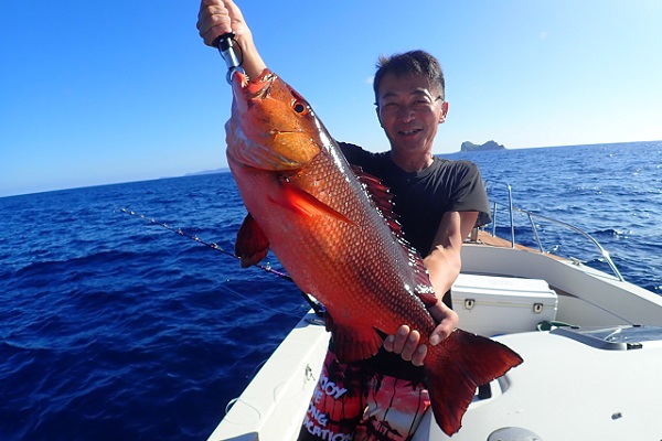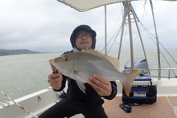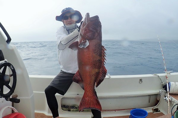 | 毎月遊びに来てくれる常連さん。今日は雨の中、今年ラストフィッシングへ行って来ました。今回は地元のお友達も初参戦で、水深80〜90mをタイラバで探ってきました。 ポイント到着時から大雨。その後大物がヒットしましたがラインブレイク多発。ようやく上がってきたのは6kg前後のキツネフエフキです。 キツネフエフキポイントなのか、良型が連発でした!そのままシーアンカーでポイントを流したら、 ミミジャー・タマン・アカジンやナガジュー・アザハタ・ホオアカクチビなど次々とアタリがあり数・種類共にたくさん釣れました!! 後半戦では、キツネフエフキとシロダイのダブルヒットも!今年の釣り納めも有りがたいことに大漁で帰港となりました。 来年もお待ちしてます、美味しいお魚堪能して下さいね〜 |