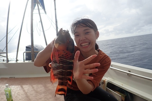 | 10月末から北風・大雨と天気がとことん悪い西表島です。今日は波が2.5mまで落ちる予報なので、常連さんとコクハンアラ狙いの泳がせ釣りへ行ってきました。 グルクンも無事に釣れ、泳がせ釣りスタート。バラハタから始まり、食べ頃なアカジンを見事キャッチ!その後も、 泳がせ釣り初挑戦のお友達も色々な種類を掛けて、大物の引きを堪能していました。最後にドラマがあり、 雨が降る中、「仕掛けを上げて帰りましょう」からの巻き上げでバイト。 探していたコクハンアラを釣り上げていただきました。 明日から天気は下り坂ですが、引き続き泳がせ釣り頑張ります。 |