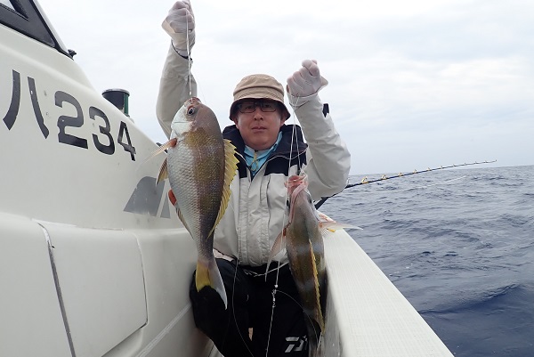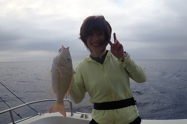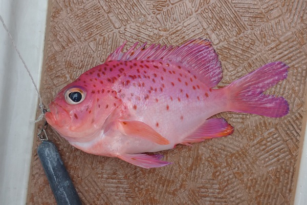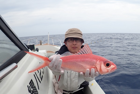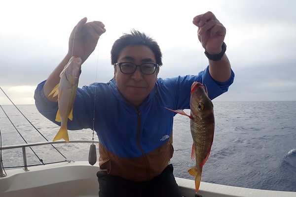 | 相変わらず波1mのベタ凪が続いている西表島です。 常連さんと久し振りに深海餌釣りへ行って来ました。 潮の流れも良く、小型ながら本命のアカマチを数匹キャッチ!その後も オオクチハマダイやエチオピアのダブルヒットなどあり、クーラーボックスも今日はとても賑やかです。 色々とポイントを回り、最後にはジャンボシマアオダイの群れを見つけて楽しい1日となりました。 水深270mで釣れたイトマンオオキンギョ。ハナダイの仲間ですが、日本で4〜5個体しか釣れていない激レア魚。メスの標本はないとのことで鹿児島大学へ寄贈させていただきました。 |