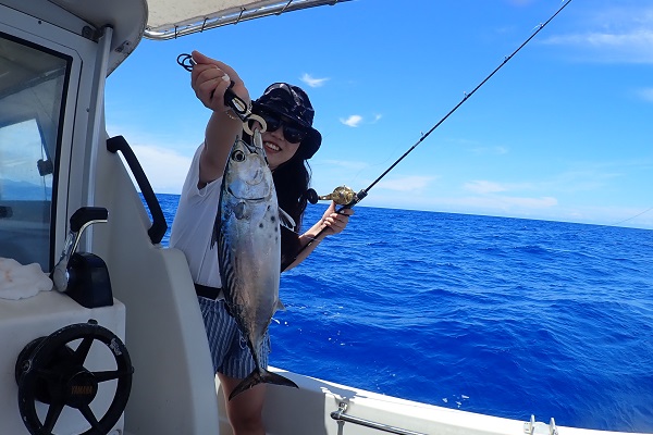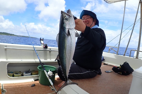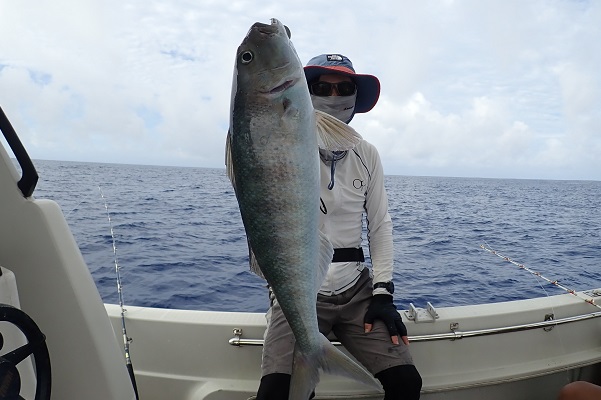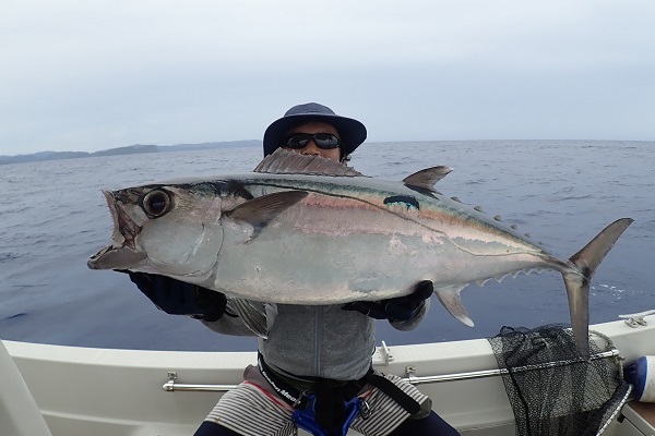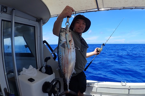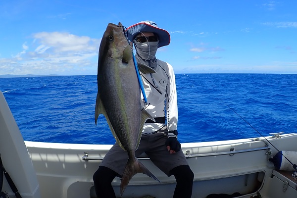 | 石垣島から日帰りでご参加の今日のゲスト様。予定はリーフキャスティング。港へお迎えに行くと海は風ゼロ。波もゼロの為、予定変更で仲の神島までライトジギングに行って来ました。 相変わらずアタリの多い島で開始1投目からツムブリ。その後もアタリ連発しますが食いが浅いのかバラシ連発でした。 午後から徐々に食いが良くなり、帰る直前は良い魚が連発となりました。次回は、西表島にお泊りで遊びに来てくださいね。 |