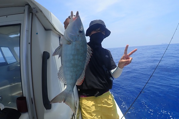 | 台風2号は何事も無く通り過ぎ、今日からツアー再開です。 今日は台風のうねりが少し残る中でしたが、親子で体験フィッシンングにご参加頂きました。 キツネウオやベラ、フエフキダイなどを釣りながら時々オジサンやミミジャーなど美味しい魚も混じってくれました。 珍しくハタ類は1匹も釣れませんでしたが、食べるには十分な量が釣れました。時合に当たり、入れ食いの時間もありました。 是非また遊びに来てくださいね〜 |