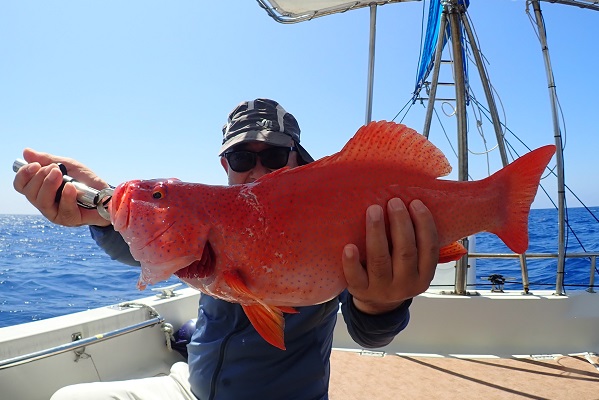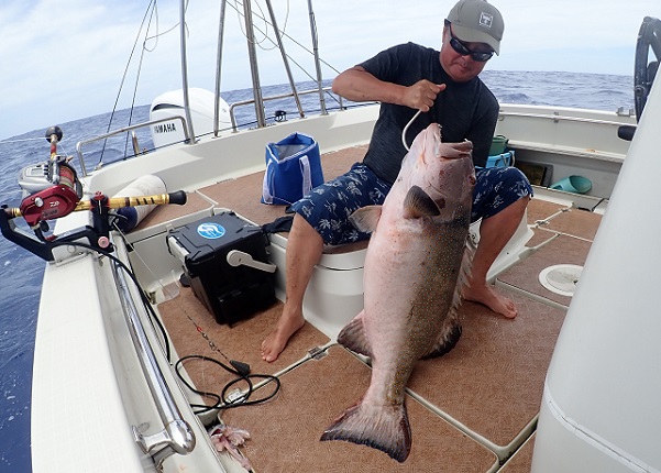 | 今年2回目の来島、常連様。早朝出船で深海ジギング・カンパチジギングへ行って来ました。 毎度お馴染みのオオクチハマダイ。8kg超えの良型でした。今日は潮の流れが無くその後は大苦戦。水深150mで、 ヒレナガカンパチ!ロングジグをロングフォールで気持ちの良いバイト!お見事でした。 |