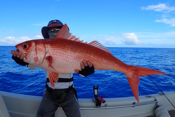 | 2日連続で仲の神島チャレンジ!今日もライトジギングで神島へやってきました。アカジン狙いで水深50mからスタートです。 釣り開始1投目にしてキツネフエフキ。神島のポテンシャルを感じます! その後も、 フエフキダイやシロブチハタ、バラハタなどはコンスタントに釣れますが、超特大ヒットはゼロ。お昼ご飯は島近くで、 透明度高い海を満喫しながらのお昼ご飯。あまりの暑さにシュノーケリングも楽しみました。数はたくさん釣れましたが、神島らしい魚は次回へ持ち越しとなりました。 |
