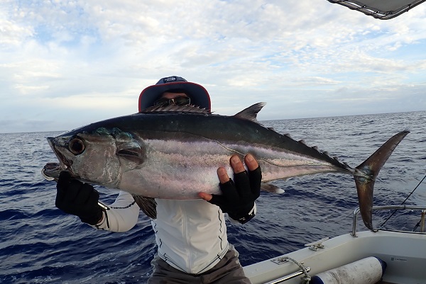 | 梅雨入りしているにもかかわらず、全く雨が降らない西表島です。 今日は早朝出船で深海ジギングへ行って来ました。朝の5:30お迎えと気合いの入った釣行です!! ポイント到着後1投目にして良いサイズの深海イソマグロ。浅瀬で釣れるイソマグロとは全く違い、身に脂があり美味しいです。その後も、 深海ジギング初挑戦で見事オオクチハマダイをキャッチ!次第に狙う水深が深くなり、400mからの回収中で、 2m超えのオナガザメことニタリをキャッチ。ファーストランで200mダッシュ。ダイバーとしては憧れのサメだと思います。 明日は仲の神島で泳がせ釣り予定。浅瀬で餌を釣って帰ります。 |