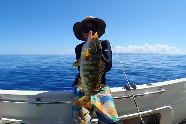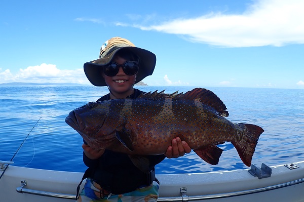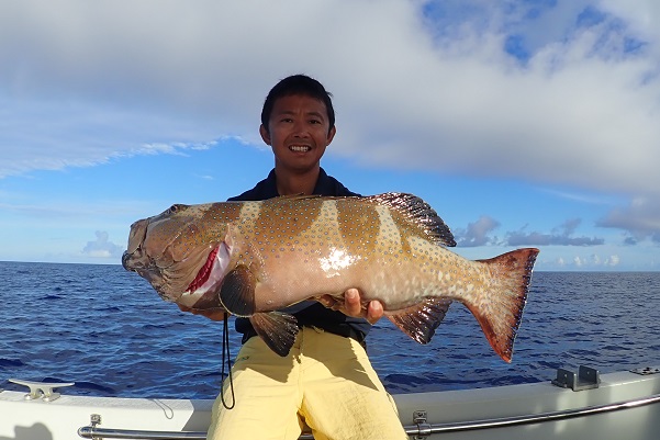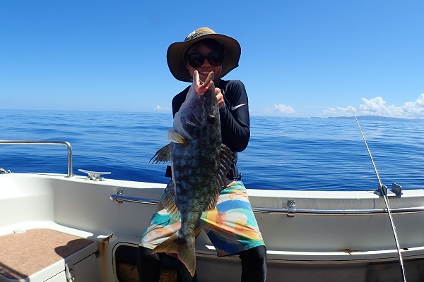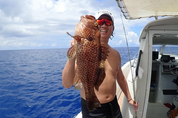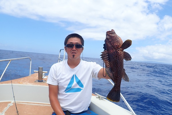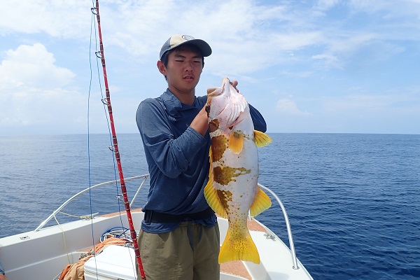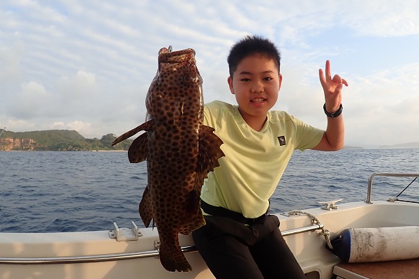 | 台風6号が通過して、ようやくうねりが落ち着いてきました。しかし沖では釣りが出来ない程のうねりなので、島陰で釣りへ行って来ました。 本来は沖へ出て大物狙いへ行きたかったのですが、湾内の実績ポイントを回りなんとか美味しいハタをキャッチ出来ました。 またの機会に沖釣り、シュノーケルはご案内させて下さいね。 |
