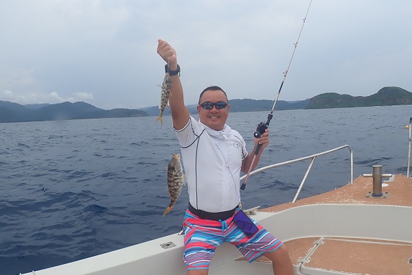 | 台風9号が発生していますが全く影響のない今回の台風。むしろ少し涼しく快適です。今日はフランスよりお越しのご夫婦。慣れない英語、大げさなジェスチャーで体験フィッシンングをご案内させていただきました。 釣りは全くの初めてで、釣れるか不安だったみたいですが、釣れたら少年・少女の笑顔いただきました。刺身でも煮付けでも食べられるとの事だったので、居酒屋を予約して美味しく食べてもらいました。 そしてもっと英語の勉強が必要だと感じた半日ツアーでした。 |