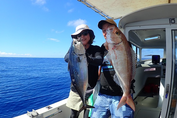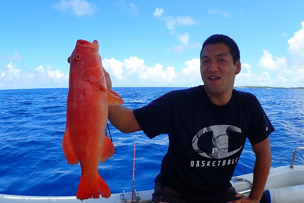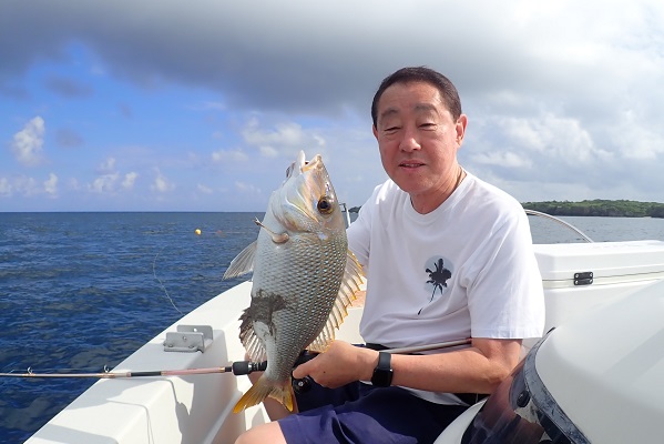 | 長い台風休みも終わり、今日から久し振りのツアーです。今日は親子と泳がせ釣りでアカジン狙いに行って来ました。 グルクン釣りに多少時間が掛かりましたが、なんとか本命コクハンアラを釣ることが出来ました。途中サメの猛攻に遭い、大きくポイント移動をしたのが大正解。食べる分は釣れたので少し早上がりでした! |