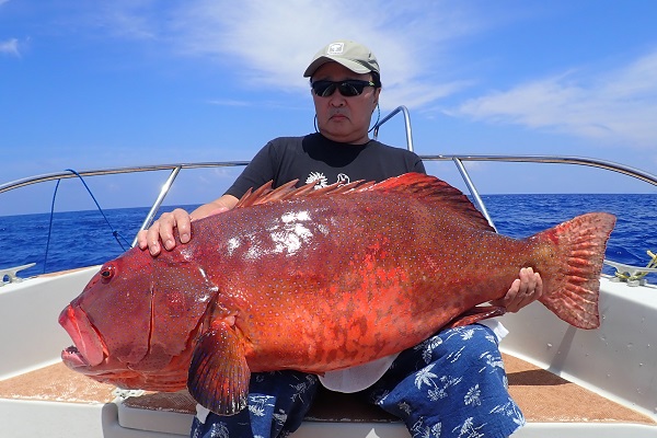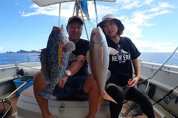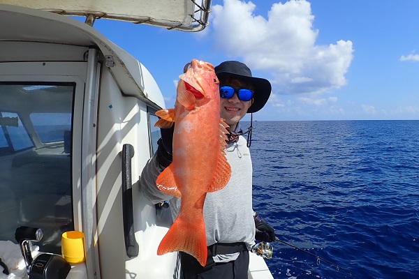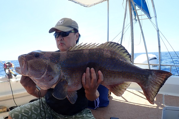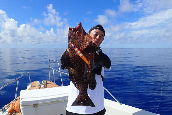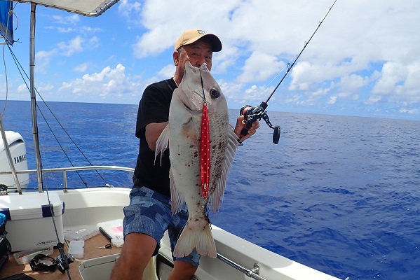 | 今日は数日前に乗船していただいたゲストと1日チャーターでアカジン狙いに行って来ました。 海も静かで快晴。魚の活性も良く、美味しそうなハタがたくさん釣れました。インチク・鯛ラバに反応良し!! ジギングでは、TGベイト120g一択で良いサイズのハタを連発してました。また来年もお待ちしております。 |