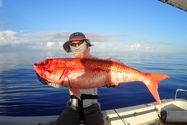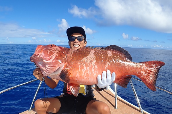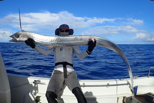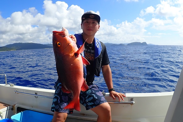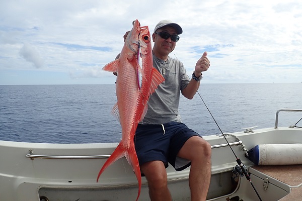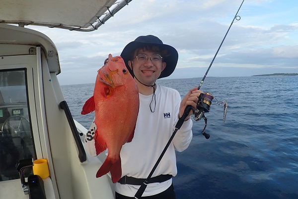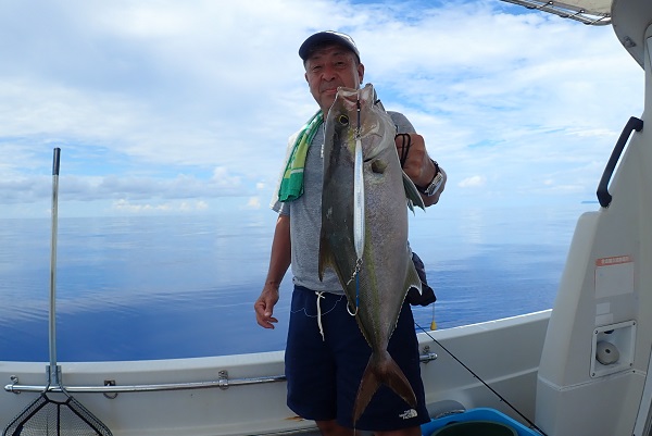 | 9月に入り、台風さえ来なければベタ凪の日が続きます。今日も波1mと海日和なので、仲の神島遠征で水深30〜350mまでジギングをしてきました。 風も無く、潮の流れも緩い日。ナガジューミーバイやムルーなどは釣れますが、なかなか良い魚が釣れずポイント移動の繰り返し。着底直後のバイトで良いサイズのシロブチハタがバイト。その後は30〜70mを転々とするも良いバイトはなく水深150mへ。 ハイピッチからのロングフォールでヒレナガカンパチをキャッチ!深場は反応良くバイトが続きましたが全てサメの餌食に・・・。 帰り道の水深350mで深海ジギング。まさかの着ドンッで大本命のアカマチを見事キャッチとなりました。終わり良ければ全て良し!明日も頑張りましょう。 |