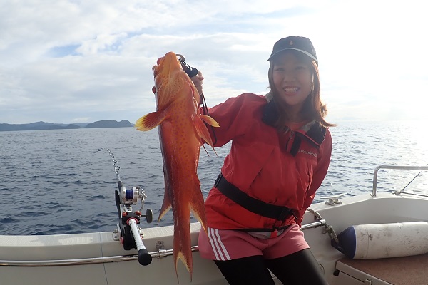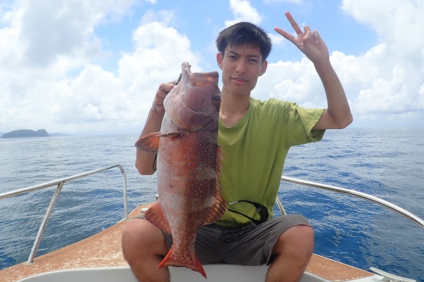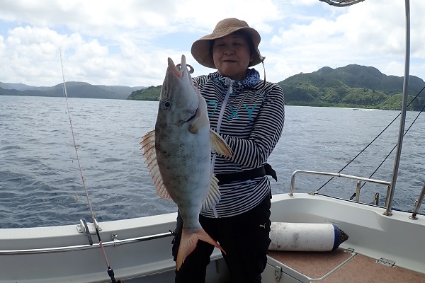 | 今月初めての体験フィッシングへ行って来ました。 キツネウオやニジハタ、オジサンなどを釣りながら、時々タマンやシロブチハタ、オオメカマス等美味しい魚も混じりました。雨に降られず、気持ちの良い体験フィッシングでした。 |