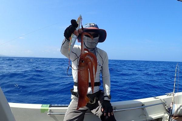 | 昨日の午後に確保したグルクンをイケスで活かし、今日は深海ジギング・グルクン泳がせ釣りの2本立てです。まずは、深海ジギングから、 朝一はアカマチポイントに入るも、居たのはジグと同じサイズ。移動を繰り返しましたが反応悪く、水深500mへ。 水深500mは活性も高く、1投目でエチオピア。2投目で謎のイかと連続ヒットとなりました。お昼前には浅瀬へ戻り、泳がせ釣り開始。 下げ潮では無反応でしたが、干潮潮止まりのタイミングで連続サメからのアカジン・バラハタ等時合でしっかり夕食を確保。明日が常連さん最終日。何か事件は起こるのか!? |