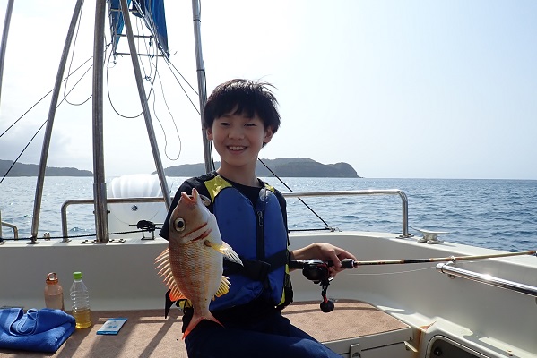 | 昨日の時化も少しおさまりましたが、沖はまだ大きなうねりです。 風がおさまる午後から体験フィッシングへ行って来ました。 キツネウオから始まり、ハタ・ベラ・フエダイ・フエフキダイと種類・数共にたっぷりと楽しんでいただきました。今日の大物賞はお母さんのナミフエダイ。色々な魚、食べてみてくださいね〜 |