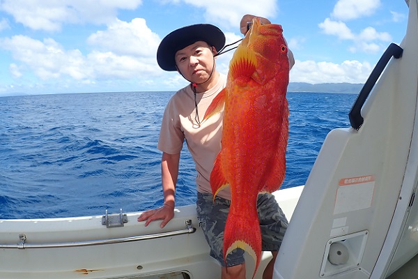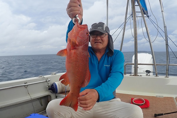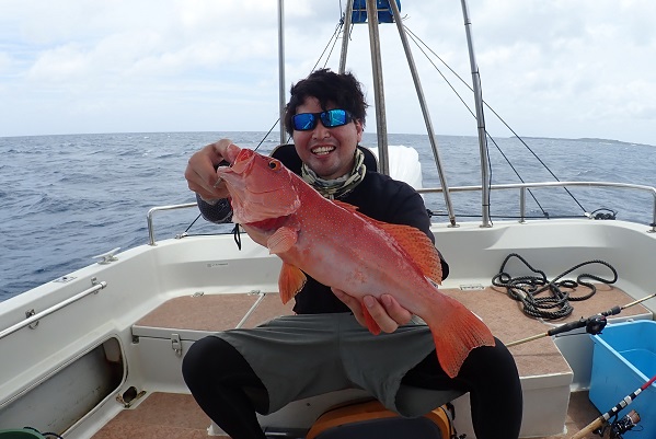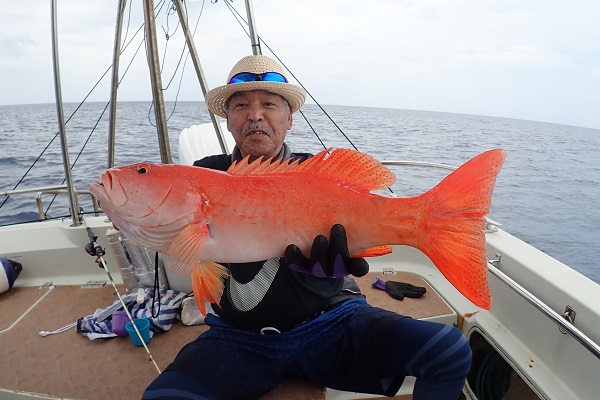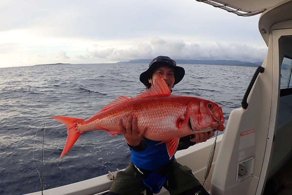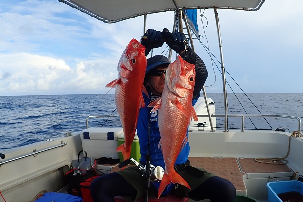 | 久し振りに波1.5〜1m予報の西表島。早朝出船で深海のジギング&餌釣りを楽しんできました。 朝一の大切な1投目。水深280mで反応バッチリポイントにスパイXを投入。1シャクリもせずに大型オオクチハマダイがバイト!お見事でした! その後も高活性は続き、1つのジグにオオクチハマダイが2尾!!稀にあるラッキーです。その後は超深海ご希望で、 餌でもジグでもエチオピアは連発です!!やはり早朝出船の深海釣りはやめられませんね〜。明日は泳がせ釣りでーす。 |