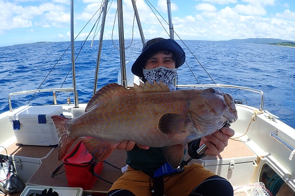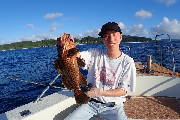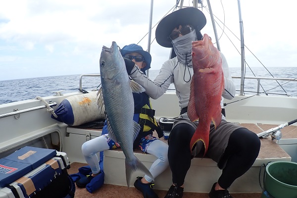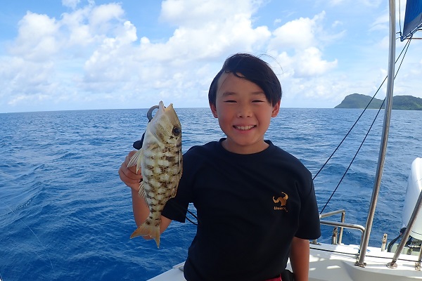 | 去年から遊びに来ていただいているリピーター様。今回はまさかの強風な日に当たってしまい、船浮湾内まで行き夕食の食材を釣ってきました。 魚探には反応バッチリですが、魚の食いが悪い日。深場の実績ポイントを転々と回り、ハタ・フエフキダイをキャッチ! その後も釣り方を変え、ポイントを変え、釣ってもらおうと頑張りましたが少し寂しい釣果となりました。是非来年、リベンジ釣行させて下さい。また、お待ちしております。 |