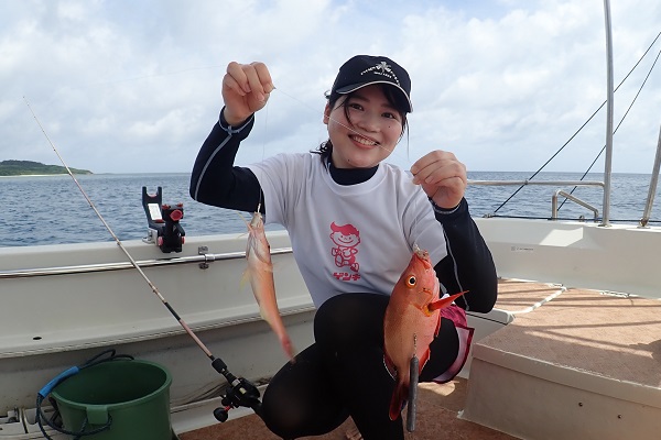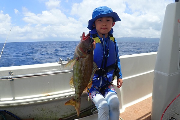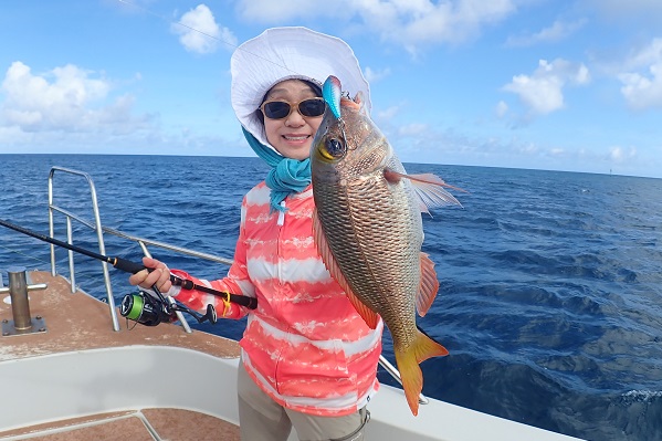 | 朝から曇り空&緩めの南風と、釣りをするにはばっちりな天気です。 今日は餌釣りとタイラバで沖縄らしい魚を釣りたいとリクエストです。 朝一から沖へ出てタイラバ開始!潮の流れも良く、バイトは多数ありましたが、上げている途中でサメの餌食に・・。ポイントを大きく浅瀬に変えてみれば、 タイラバでも餌釣りでも良い魚がバンバン釣れました!掛かったフエフキダイを横取りされる事も多々あり、 最後には3kg前後のアカジンも追加して、大満足の帰港となりました。 釣れた魚もたくさんいましたが、根に潜られて逃がした魚も多数! 次回のリベンジお待ちしております。 |