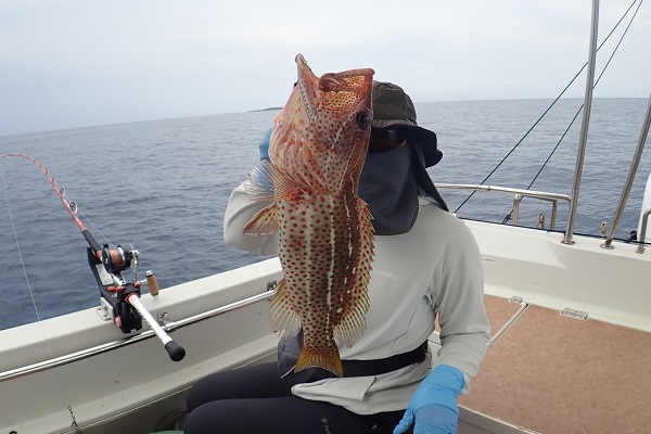 | 昨日から吹き始めた風が更に強くなり、今日はポイント限定のタイラバへ行って来ました。まずは水深80〜100mへ。 魚の活性はやや低めでしたが、良型のハタがぽつぽつと釣れました。 カツオなどの回遊魚を狙うも不発・・。水深の浅いポイントへ移動して、 フエフキダイ・バラハタと良型をキャッチ!!今日は全体的に潮が緩く、ハタの食いが良かったと思います。また来月、お待ちしております。 |