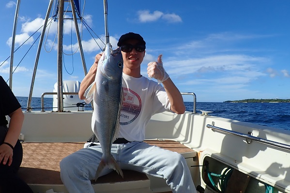| 大雨&雷の日もあれば、快晴と天気が全くよめない西表島。今日はリピーター様と体験フィッシングへ行って来ました。 ポイント到着後の釣り方レクチャー中にヒットしたオオメカマス。魚探にも反応バッチリで今日は期待大です!その後も、 フエフキダイ・ニジハタ・カワハギなど体験フィッシングらしい魚と戯れて、その中でも時々良いサイズのハタも釣れました。刺身・煮付け、唐揚げ等美味しく食べて下さいね〜!またお待ちしております。 |
