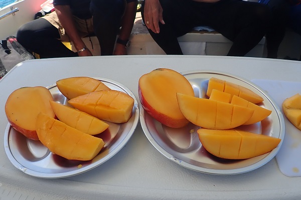 | 毎日夏日の西表島。今日は風もおさまり海日和!先日、乗船していただいた常連さんが仲間達を連れて釣り&シュノーケルツアーにご参加して頂きました。リクエストは網取方面。白浜〜船浮、網取とクルージングしてのんびり1日遊んできました。 釣り開始の1投目。ナイスサイズのマダラハタ!!その後もミミジャー・ビタロー・ムルーと入れ食いの1時間。お昼前に活性も落ち、お昼ご飯後は網取でシュノーケルへ。 今日は天気も良く、透明度も最高!上から見る青さに一同大興奮。 海の中も真っ青でした!ハマクマノミ・イソギンチャクの赤がよく映えますね〜。そして、シュノーケルから上がった後は、 これから旬を迎える高級デザート、マンゴーです!まだまだ追熟させたら美味しくなる採れたてでしたが、それでも泳いだ後は美味しい!! 西表島常連ゲスト様ならではの、まったりとした1日ツアーでした。 |