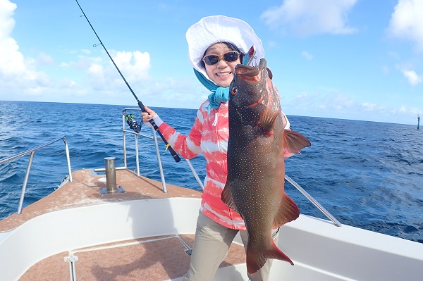 | リーフキャスティング2日目。昨日よりも少し風が強く、うねりもパワーがあります。風向き的に釣りが出来るポイントが限られますが、今日も1日楽しんできました。 昨日と同じ、沖の根から釣りスタート。朝の時合か開始早々クチナギをキャッチ!その後も、 メインターゲットのアカジンやクチナギなど連続ヒットです。 風裏の静かなリーフではシロブチハタ・ニジハタ・バラハタなどがたくさん釣れました。お昼休憩中の浅瀬では、 今年生まれたばかり!?のアオリイカが釣れました。昨日よりも風が強く心配でしたが、魚の活性は高く美味しい魚連発でした。 |