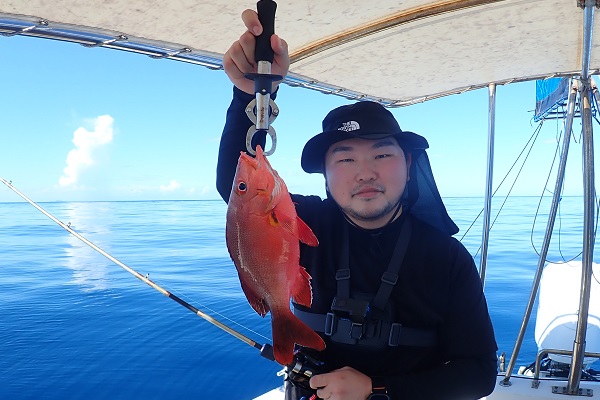 無風のベタ凪スタートをした日。船釣り初心者VS経験者の餌とジギングで美味しい魚狙いです。![]() 網取沖のミミジャーポイント。アタリが少ない日でしたが、ミミジャーは無事に確保。その後は餌・ジギングを交代しながら遊び、 ![]() ジギング初めてで大きなバラハタもキャッチ!魚の活性が悪く大苦戦な1日でしたが、最後はシュノーケルもして帰港となりました。 |