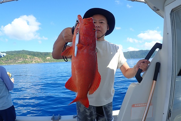 10月は運動会・入植祭など地域行事が忙しい月ですね。約半年ぶりに遊びに来てくれた常連様。去年は天候に恵まれずなかなか行けなかった仲の神島。今回は海況も良さそうなので、前日になるべくでっかいグルクンを20匹用意をして、翌日朝一から神島へ向かいました。![]() 久し振りの神島泳がせ釣り。30cm程のグルクンを餌にモンスター狙い。 ファーストフィッシュは3〜4kgのコクハンアラ。釣り開始早々釣れたのでとっても嬉しかったです。その後も食いが続き、 ![]() 7〜8kg程のコクハンアラもキャッチしました。釣れた事よりも、仲の神島で再び釣りができたことへの喜びが大きい常連様。また来年も無理なく釣りを楽しみましょうね。 |