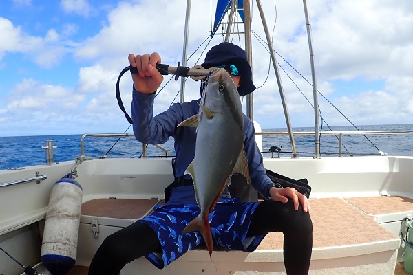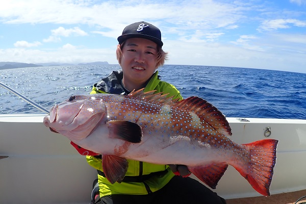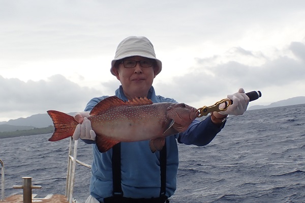 | 今日から波も少しずつ落ち着き、ようやく沖へ出て釣り開始! 今日は北風予報なので、鹿川まで遠征をして美味しい魚を狙ってきました。 開始1投目にしてアカジンをキャッチ!このま良い釣果になるかと思いましたが、食いが失速・・。そんな中でもスマやオオモンハタ・シロブチハタ・アザハタなど美味しい魚は無事確保しました。 最後の最後に特大バイトがあり、魚を船で追いかけましたが全く歯が立たずにラインブレイクでした。また、来月お待ちしております。 |