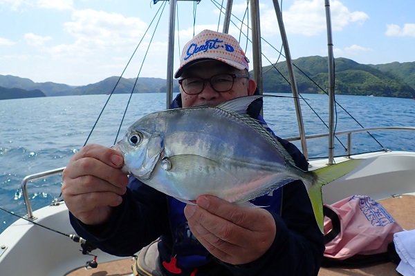| 長かった時化もようやくおさまってきましたが、今日は安全第一で船浮湾内でジギングとタイラバに行って来ました。 今日はタイラバ優勢か!?オジサン・シロダイ・アザハタと3連続ヒット!お父さんはドラグを出す、 キツネフエフキを見事キャッチ!!おめでとうございます。 途中晴れ間も見え、気持ちの良い日でしたが、魚の活性はいまいちでした。次回は沖へ出て釣り出来たら良いですね。お魚美味しく食べて下さいね。 |