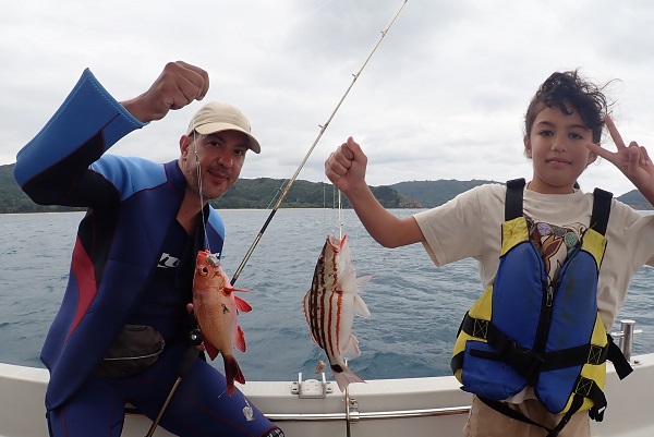 | 今日は珍しく石垣島からご参加のお客様。海況・天候とあまり良い状況ではありませんでしたが、風裏ポイントで楽しく遊んできました。 今日は魚の活性も良く、ミミジャーやフエダイ・フエフキダイなど数・種類共に大漁です。 本命のナミハタも複数釣れて、食べる分は十分確保。またお待ちしておりまーす。 |