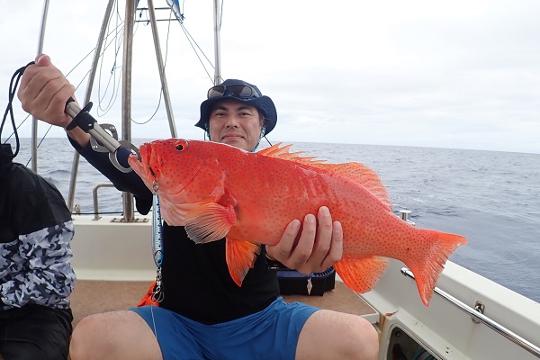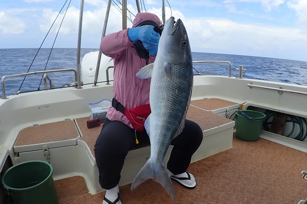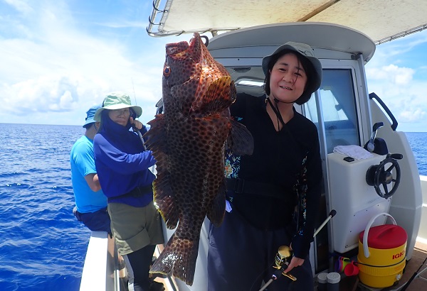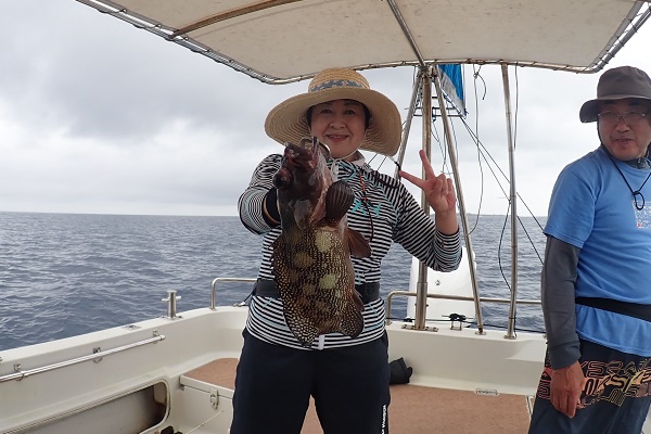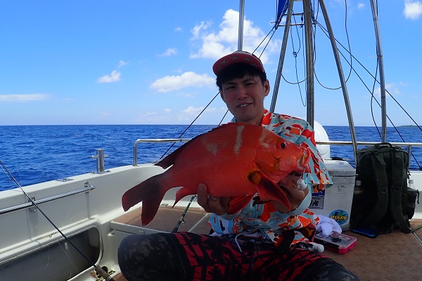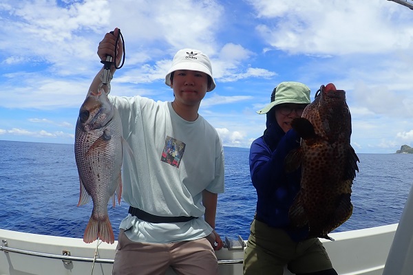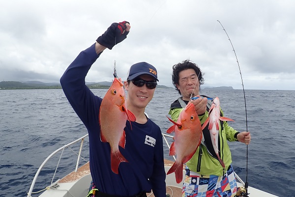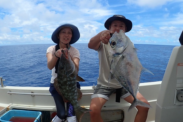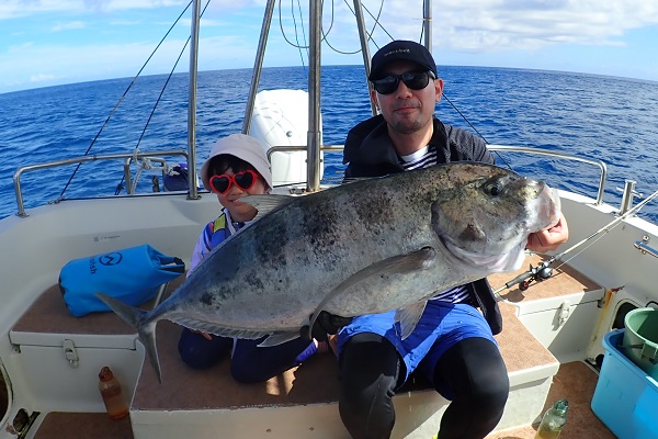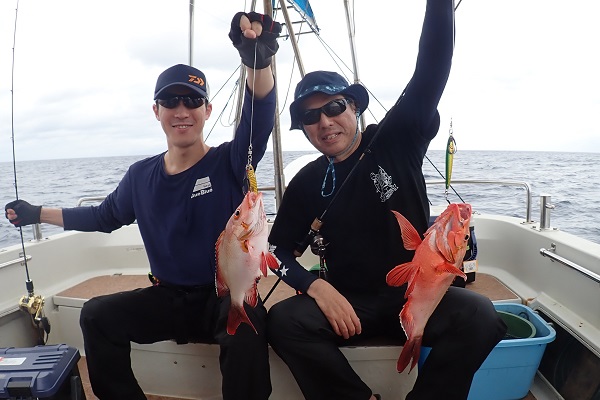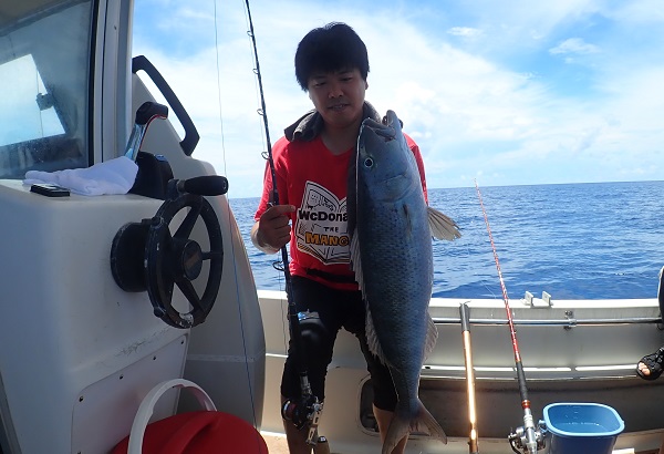 今日も波1mの海日和です。本日のゲストは普段から船釣りをしているお父さん&船釣りデビューの娘さん。ジギングと餌釣りで美味しい魚を狙ってきました。![]() 潮の流れも良く、開始1投目にして良型のフエフキダイをキャッチ! その後も餌釣りではオジサン・ハタ・フエフキダイ等入れ食いでした。 ![]() ジギングのお父さんもフエフキダイやミミジャーなどを釣り、本日の大物賞はホシカイワリです!余裕の10kgオーバーでした!! |