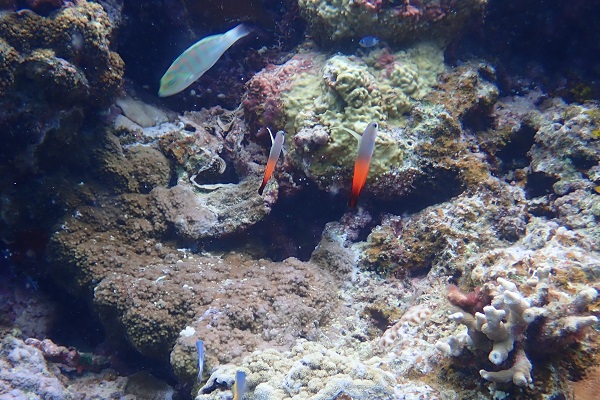 うみ日和としては珍しく2日連続シュノーケル!最近は暑いので、海の中が気持ちいいですね。今日のゲストは5〜6年振り?に遊びに来ていただいたリピーター様。嬉しい限りですね!!![]() ![]() ![]() 昨日よりも活性が高い魚達。家族みんな良い魚が釣れました! 午後のシュノーケルでは、 ![]() エントリー直後にシタビラメ発見!砂に隠れていましたが、周りの魚達に突っつかれていました。 ![]() ![]() そして今日はサザナミヤッコ属を2匹発見!タテジマキンチャクダイも探しましたが見つかりませんでした。 ![]() 少数貸し切りなのでみんな自由に泳ぎまわり、あっという間に時間が過ぎました。海ガメの写真がありませんでしたが、カメと泳げて感動してくれたみたいです。またお待ちしておりますね〜 |