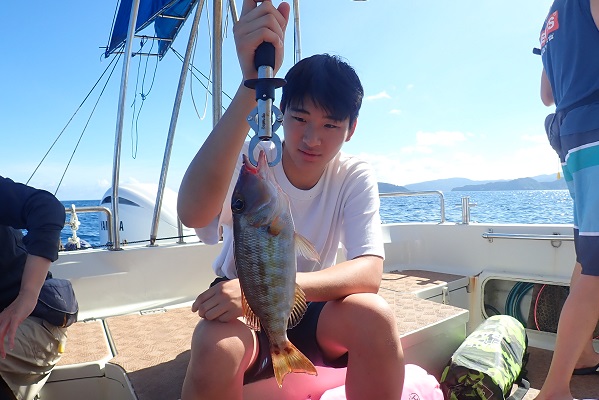 午後は毎年この時期に遊びに来てくれる常連親子。今回は少し大物を狙ってジギングに挑戦です。![]() 3ポイント目の良い反応で、バラハタとアカジンのダブルヒット!この2匹が掛かればそりゃ重たいですよね〜!父も頑張って、 ![]() ミミジャーをキャッチ!アカジンも釣れましたがサメに食われて頭だけ、他にも掛けた魚を横取りされてラインブレイクと事件多数なジギングでした。明日は泳がせ釣り予定!頑張りましょうね!! |