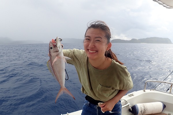 | 今日は北風が強く島の南側まで遠征してジギング&タイラバです。 潮の流れが速く釣りにくい状況でしたが、そんな時はスマが良く釣れます。関東ではなかなか釣れないサイズを釣り上げてすでに大満足。 彼女にはジグの動かし方をレクチャーして、狙い通りにTGベイトでナンヨウカイワリ!!その後は食いっ気がなくなったので少し深場へ移動。 タマンにキツネフエフキと引きの強い魚がなんとか釣れました。 しかし逃がした魚はデカかった!?是非また遊びに来てください。 |