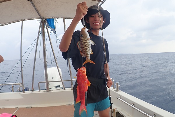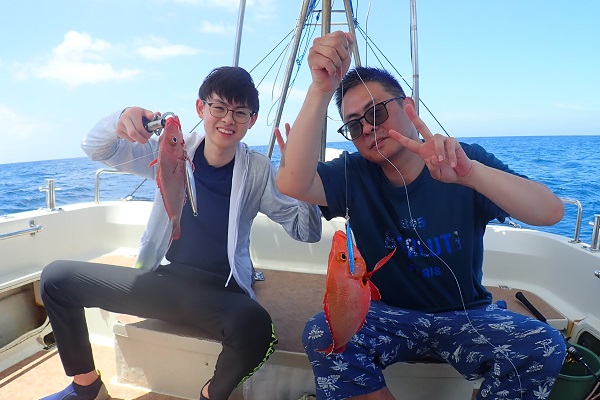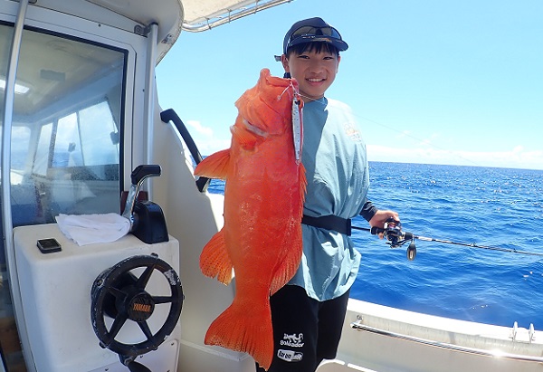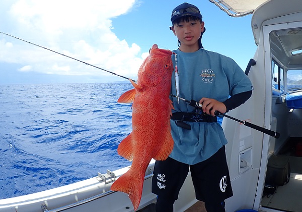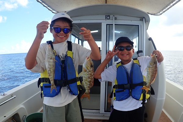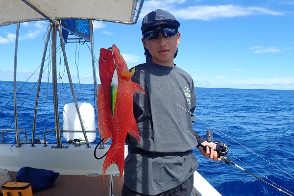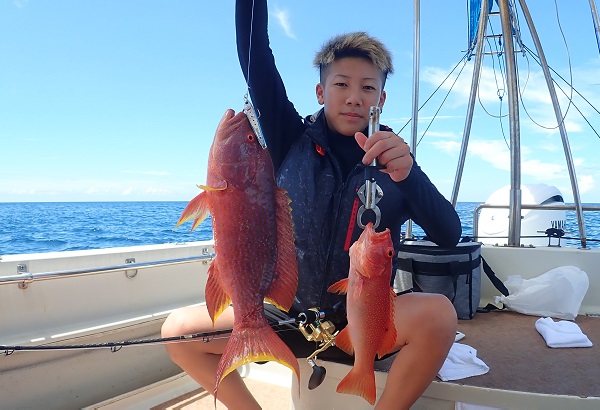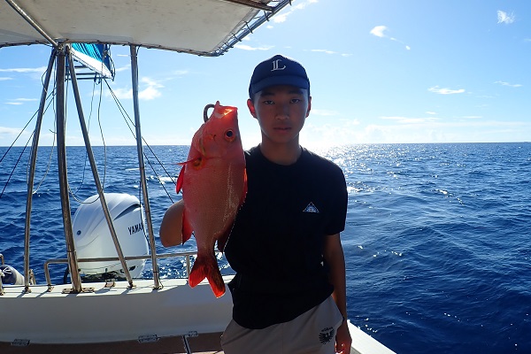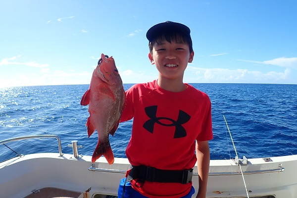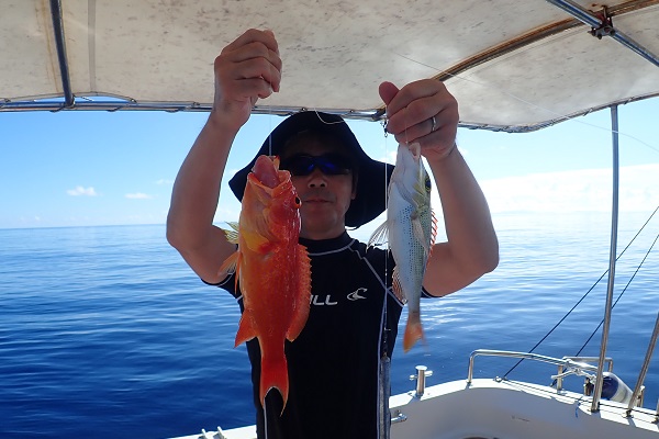 毎年この時期に遊びに来てくれる常連ご家族。今年も2日連続チャーターで本命アカジンを泳がせ釣りで狙ってきました。![]() 午前中にグルクンを釣り、お昼前から泳がせ釣り開始。アタリが少ない日で大きくポイント移動直後に強烈なバイト!上がってきたのは5kgのコクハンアラでした。一人でファイトする姿は立派でした!!その後も、 ![]() 本命アカジンを連続キャッチ!今日・明日と食べる分は十分に確保となりました。明日も頑張りましょうね。 |
