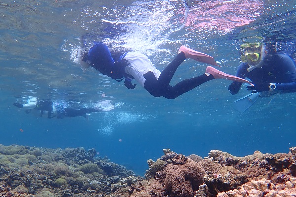 うみ日和としては珍しく2日連続シュノーケル!最近は暑いので、海の中が気持ちいいですね。今日のゲストは5〜6年振り?に遊びに来ていただいたリピーター様。嬉しい限りですね!!![]() ![]() ![]() 昨日よりも活性が高い魚達。家族みんな良い魚が釣れました! 午後のシュノーケルでは、 ![]() エントリー直後にシタビラメ発見!砂に隠れていましたが、周りの魚達に突っつかれていました。 ![]() ![]() そして今日はサザナミヤッコ属を2匹発見!タテジマキンチャクダイも探しましたが見つかりませんでした。 ![]() 少数貸し切りなのでみんな自由に泳ぎまわり、あっという間に時間が過ぎました。海ガメの写真がありませんでしたが、カメと泳げて感動してくれたみたいです。またお待ちしておりますね〜 |