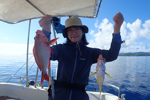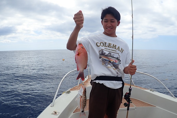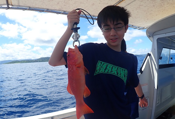 今日も午前・午後と半日チャーターツアーです。一昨日乗船して頂いたご家族とジギングでアカジンを探してきました。![]() ジギング2本、餌釣り2本で夕食の食材釣り。魚の活性は低いながらも、良い反応で母がシロブチハタをキャッチ! ![]() ジギングをずっと頑張っていた上のお兄ちゃん。無事にナガジューミーバイを釣り上げてくれました。その後は沖へ出て餌・ジギングでミミジャーを探しましたが今日はノーバイト。もっと数を釣ってもらいたかったですが、アカジンは来年へ持ち越しです。2日間ありがとうございました。 |