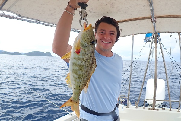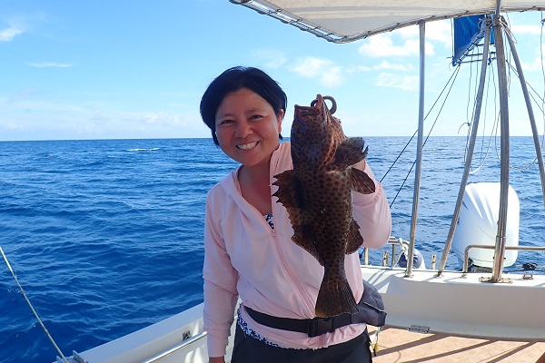 昨日に続き、午後から大物狙い。今日は泳がせ釣り専用ロッドを準備して、対策は万全です。![]() ![]() 餌となる魚を釣るまでにすでに昨日超えの釣果!シロダイ、シロブチハタ、ウメイロモドキと美味しい魚の連続です。その後は泳がせ釣りで、 ![]() ![]() しっかりと結果を出して頂きましたが、モンスターには2敗。また西表島へ来る理由ができたかな!?2日間の英会話レッスンありがとうございました。またお待ちしておりますね。 |