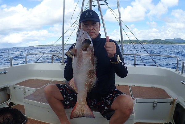 | 昨日に引き続き、常連さんとグルクン泳がせ釣りへ行って来ました。 グルクンの機嫌も良く、約2時間で50匹程確保。いざ沖へ! ![]() ![]() アタリも多く、お兄ちゃんが調子良くマダラハタ、アカジンと連続キャッチ!その後もアタリはありましたが魚が上がって来ない時間が続き、 ![]() ポイントを大きく移動したところで、大本命のコクハンアラを見事仕留めてくれました。最後は普段あまり行くことのない55→70mの崖ポイントへ。 ![]() 強烈な引き込みに耐え、上がってきたのはコクハンアラのサイズアップ!全員安打!!おめでとうございます。 |