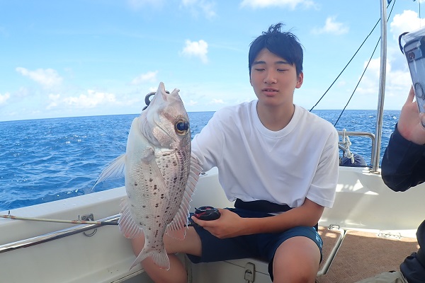 午後もご家族と半日チャーターへ行って来ました。船釣りは2回目との事で、まずは釣りやすいポイントで練習!と思いましたが、魚の活性悪く沖へ出て釣りスタート!![]() ![]() 沖の根周りでミミジャー探し!魚探に反応が出過ぎてどの群れだか分かりませんが、1流し1尾ミミジャーがヒット!!その後はミーバイ狙いへ移動しましたが、どこもフエフキダイが元気過ぎでした。 ![]() 最後のポイントではシロダイもヒット!2回目の船釣りとは思えない程、合わせが上手くたくさん釣れました。 |