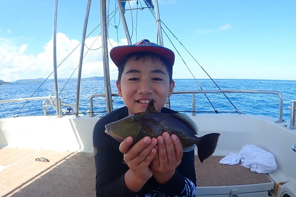 午後からは北風が吹き、海に居れば涼しい陽気です。今日のゲスト様は6〜7年前?に遊びに来て頂いた親子が釣りへ来てくれました。![]() 船酔いが心配との事で、あまり沖には出ず楽しめるポイントを転々と回りました。フエフキダイ・カワハギ・ビタロー等数も釣れて楽しめました。 |