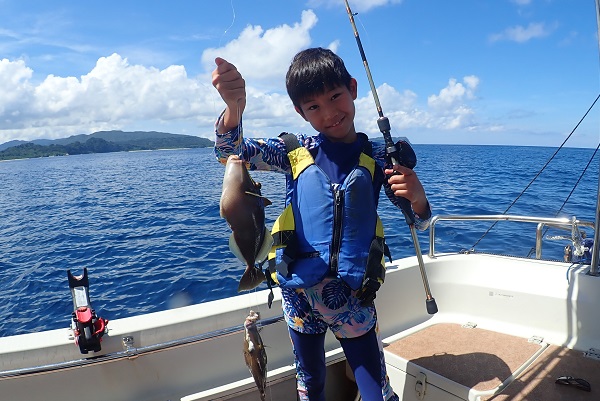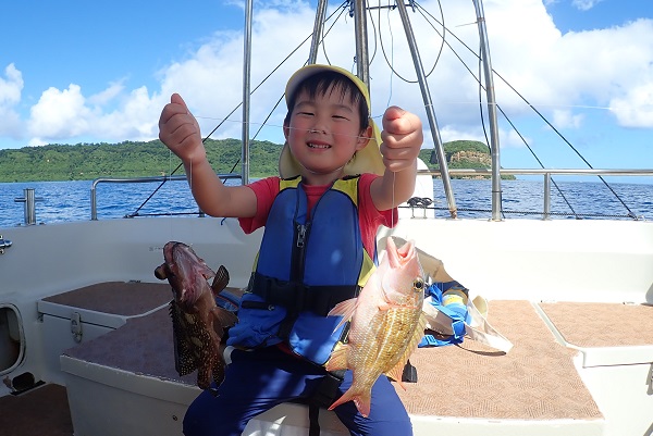 昨日釣ったグルクンを生簀で活かして、今日は朝から泳がせ釣り開始!![]() 潮の流れが緩く、なかなかバイトがありませんでしたが良いサイズのアオチビキをキャッチ!おめでとうございます。その後はサメの猛攻に遭い、ポイント移動の繰り返し。 ![]() いつもより水深が深いポイントでアカジンを釣り上げ、最後は大物ポイントで良いアタリがありましたが、残念ながらラインブレイク。 今年はお兄ちゃんの成長を凄く感じられた2日間でした。来年も楽しみです。逃がした魚達、リベンジしましょうね。 |