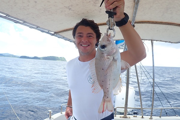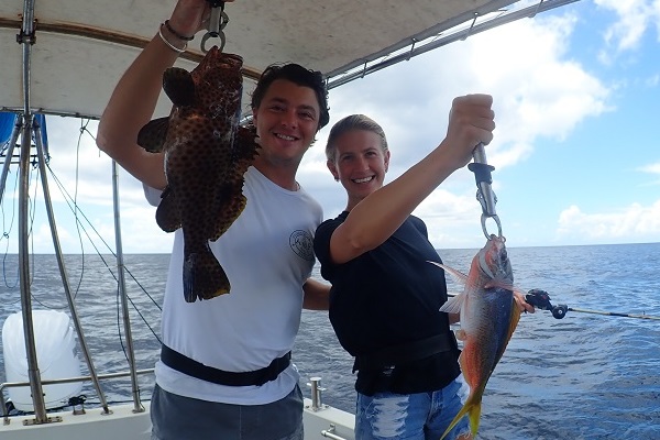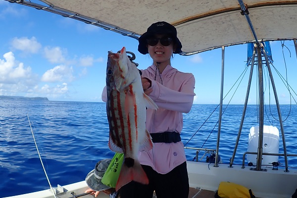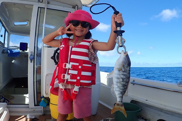 | 毎年遊びに来てくれる友達姉家族が今年も遊びに来ました。 今日は波もなく、天気も良く、最高の海日和でした!! ![]() ![]() 釣り開始直後は潮の流れがあり、アミメフエフダイやフエフキダイなど良いポイントに入ればばたばたと釣れましたが、良いアタリの魚は全てサメの餌食となりました。最後は釣り堀ポイントで数釣りを楽しんでもらい、帰港となりました。 |