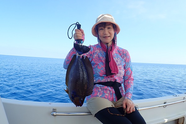 今日も波1mの海日和です。今日は午前・午後とチャーターで美味しい魚を探してきました。![]() 海を見たら分かる、ベタ凪です!!それでも魚の活性は良くフエフキダイは入れ食いでした。 ![]() 船釣り初挑戦のお母さんは立派なトカジャー!美味しい魚だったら嬉しかったんですけどね〜。また遊びに来て下さいね。 |