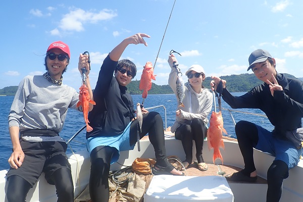 約6年ぶり?に遊びに来て頂いたファミリー。今回は友達家族も一緒に来て頂きみんなでわいわい楽しく釣り&シュノーケルへ行って来ました。![]() 前日の昼から時化始め、沖に出て釣りは厳しい状況の為、船浮湾内で餌釣りスタート。魚の活性も良く、湾内でもピンポイントで狙えば良型のハタが狙えます。今日の宴会用魚は釣れて、午後からシュノーケルへ。 ![]() 今年初めてのシュノーケルでしたが、ウエットスーツがあれば寒くなく、1時間以上は泳いでいました。透明度も良くたっぷり遊んだ1日でした。 |